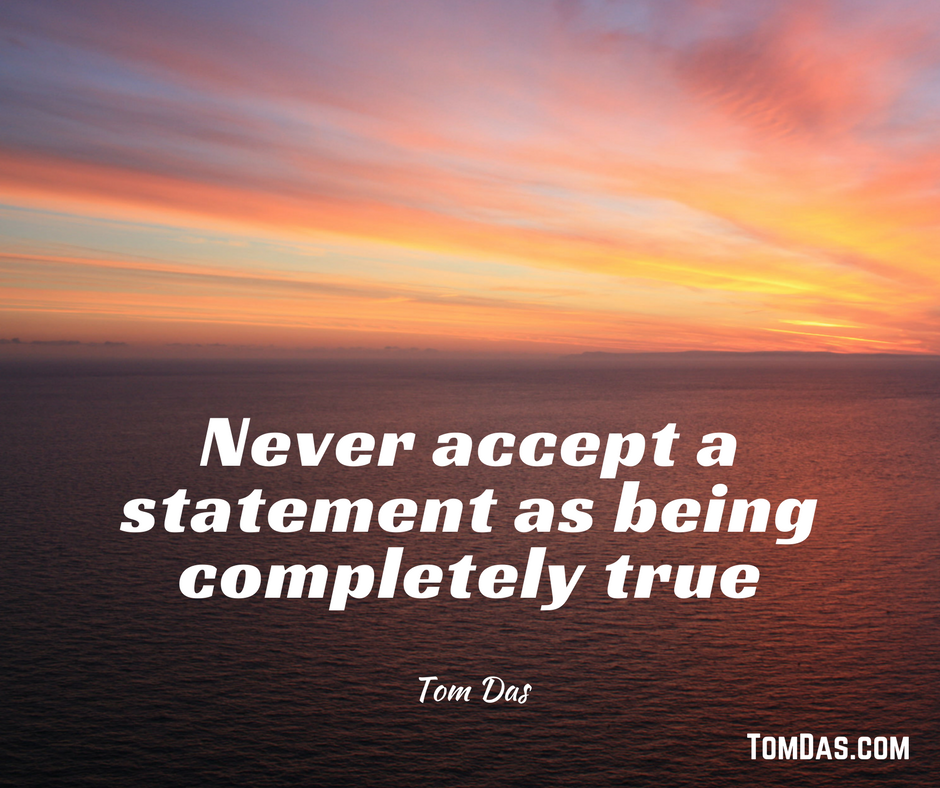never-accept-a-statement-as-being-completely-true January 25, 2017 ~ Tom Das Share this: Share on X (Opens in new window) X Share on Facebook (Opens in new window) Facebook Share on Pinterest (Opens in new window) Pinterest Like Loading...