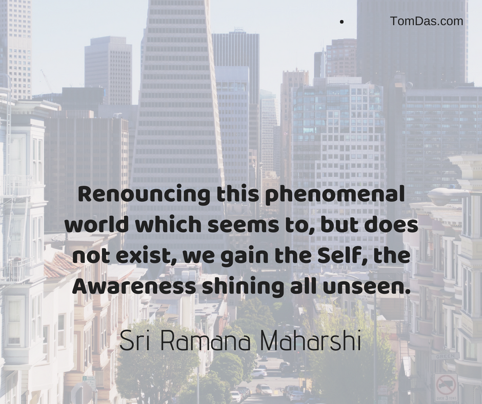 ramana renouncing this phenomenal world which does not exist January 23, 2019 ~ Tom Das Share this: Click to share on X (Opens in new window) X Click to share on Facebook (Opens in new window) Facebook Click to share on Pinterest (Opens in new window) Pinterest Like Loading...