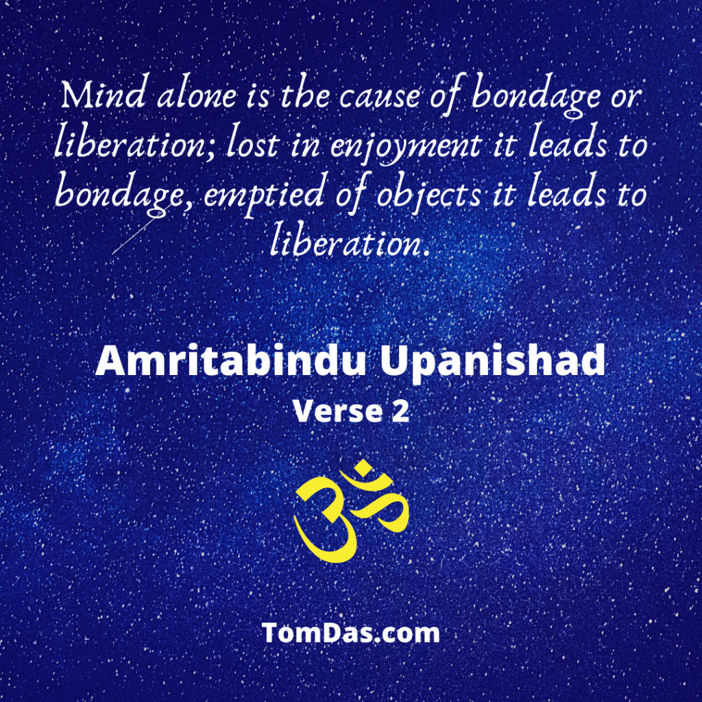 2. Mind alone is the cause of bondage or liberation; lost in enjoyment it leads to bondage, emptied of objects it leads to liberation.