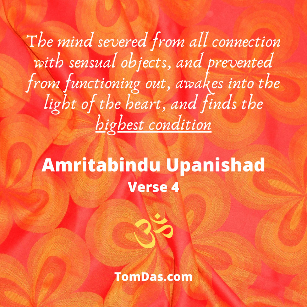 4. The mind severed from all connection with sensual objects, and prevented from functioning out, awakes into the light of the heart, and finds the highest condition