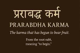 **Prarabdha Karma is the portion of karma that, according to the Vedas, gives rise to the body in the present birth and will play out and determine the specifics of the present life. A simple translation could be ‘destiny’ or ‘what is destined for this life’. The idea of this question is that, for example, if you have ‘been bad’ in the past and have accumulated negative karma as a result, even though you have realised the Self, this negative karma may continue and cause suffering for you even after Self-Realisation. The Upanishads are clear that all karmas and all suffering end upon Self-Realisation, so one need not even fear the negative results of one’s past actions if one realises the Self.