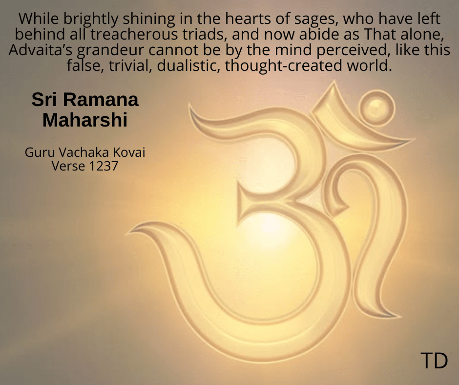 Throughout this post I quote extensively from the text Guru Vachaka Kovai (which you can download from this link) a collection of teachings from Sri Ramana Maharshi. It is widely accepted that the text Guru Vachaka Kovai presents the most precise, systematic and authoritative exposition of Sri Ramana Maharshi’s verbal teachings; Here is what Ramana Ashram states about the Guru Vachaka Kovai in the foreword of their publication of it: