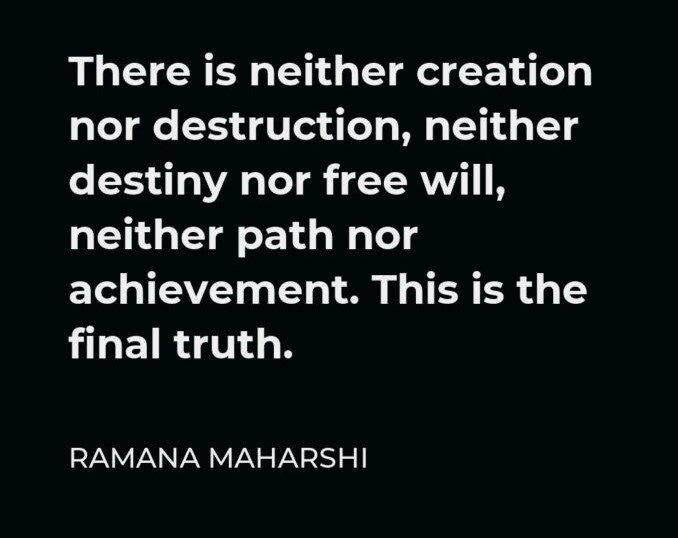 One example is the (false) teaching that ‘liberation is only the beginning’ or ‘self-realisation is only the beginning’. Again, if self-realisation is ‘only the beginning’, then that simply means that the self has not truly been realised. Self-realisation is the end, the final destination, the terminus of the spiritual journey. No sense of individuality or multiplicity or duality remains with liberation, as Sri Ramana taught: